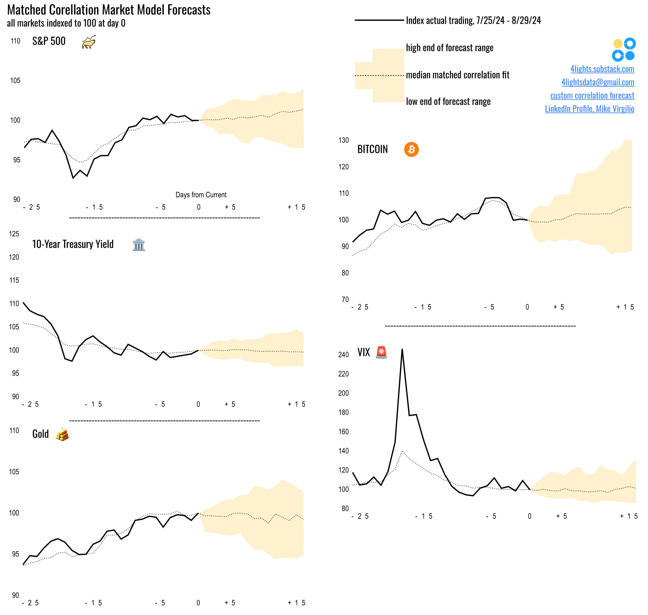 4Lights Forecasts: SP500 ▲+1.4% | BTC ▲+4.9% | 10Yr Yld ▼-0.1% | VIX ▲+1.4% | Gold ▼-0.8%